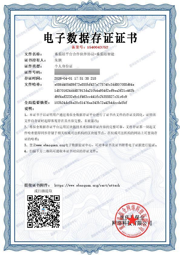 证书说明:使用君子签、微版权做存证、确权或者取证后,由易保全出具证书,证明存证、确权、取证所产生的电子数据的哈希值都被存证在了保全链上,可作为维权证据